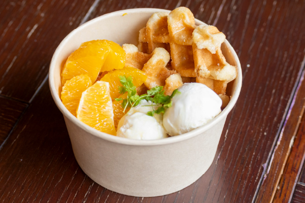 | 12 | Kitchen 57 | 香ばしく焼き上げたワッフルに、オレンジの果汁とバターを使った特製ソースをたっぷりと。ほんのりビターで爽やかな甘みが広がるワッフルシュゼット(オレンジ)。目の前で仕上げるライブ感と、立ちのぼる柑橘の香りをお楽しみください。食べ歩きにもぴったりなちょっと大人のご褒美スイーツです。 |